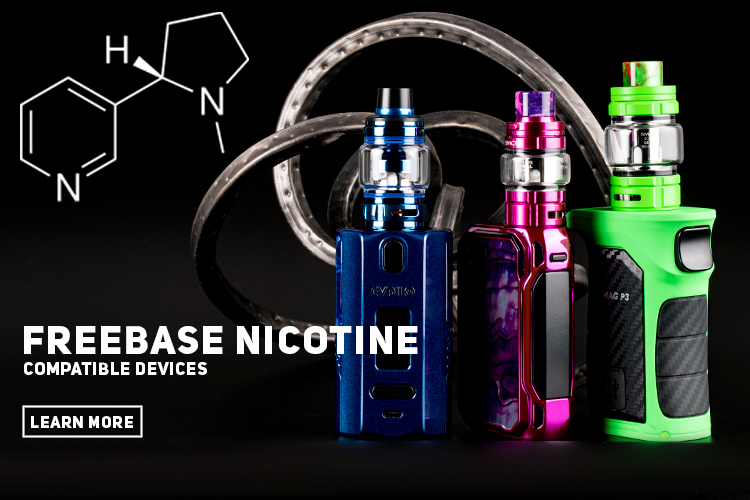 Freebase E-Liquids are great for sub-ohm devices, or box mod paired bigger atomizers such tanks and RDAs. As freebase nicotine has a lower degree of nicotine concentration, they are best used with Sub-Ohm Devices. The larger coil, higher power, and lower resistances of sub-ohm devices and tanks allowing for freebase nicotine to be vaporized within the juice, delivering a small dose within a large cloud of vapor. These are best for those that prefer performance, outputting substantial clouds. Although plenty of vapor is created, the nicotine concentration remains fairly low. Freebase eJuice can be loaded into a pod system for more discretion, but many pod systems are not optimized for freebase eJuice, as the lower strength of freebase nicotine cannot be fully vaporized to the same capacity sub-ohm devices are capable of.